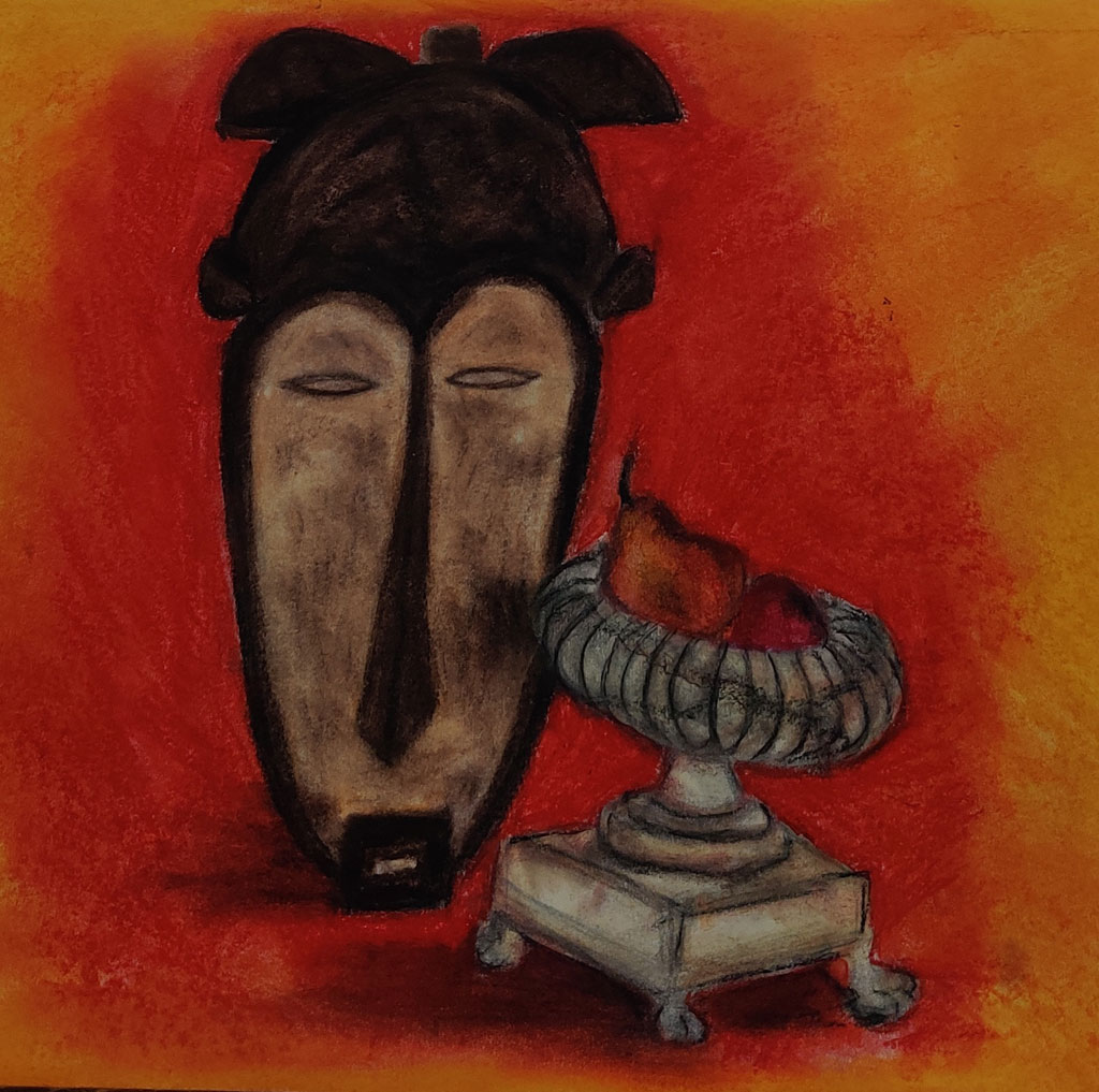 Name- Mask and fruit bowl still life